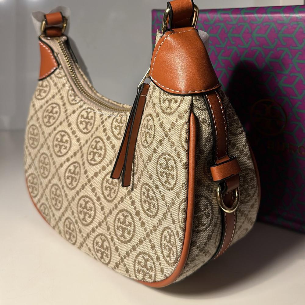حقيبة يد أنيقة تتميز بتصميمها العصري و الجذاب، تأتي بمزيج من الجلد الفاخروالقماش المنقوش بشعار العلامه الايقوني
