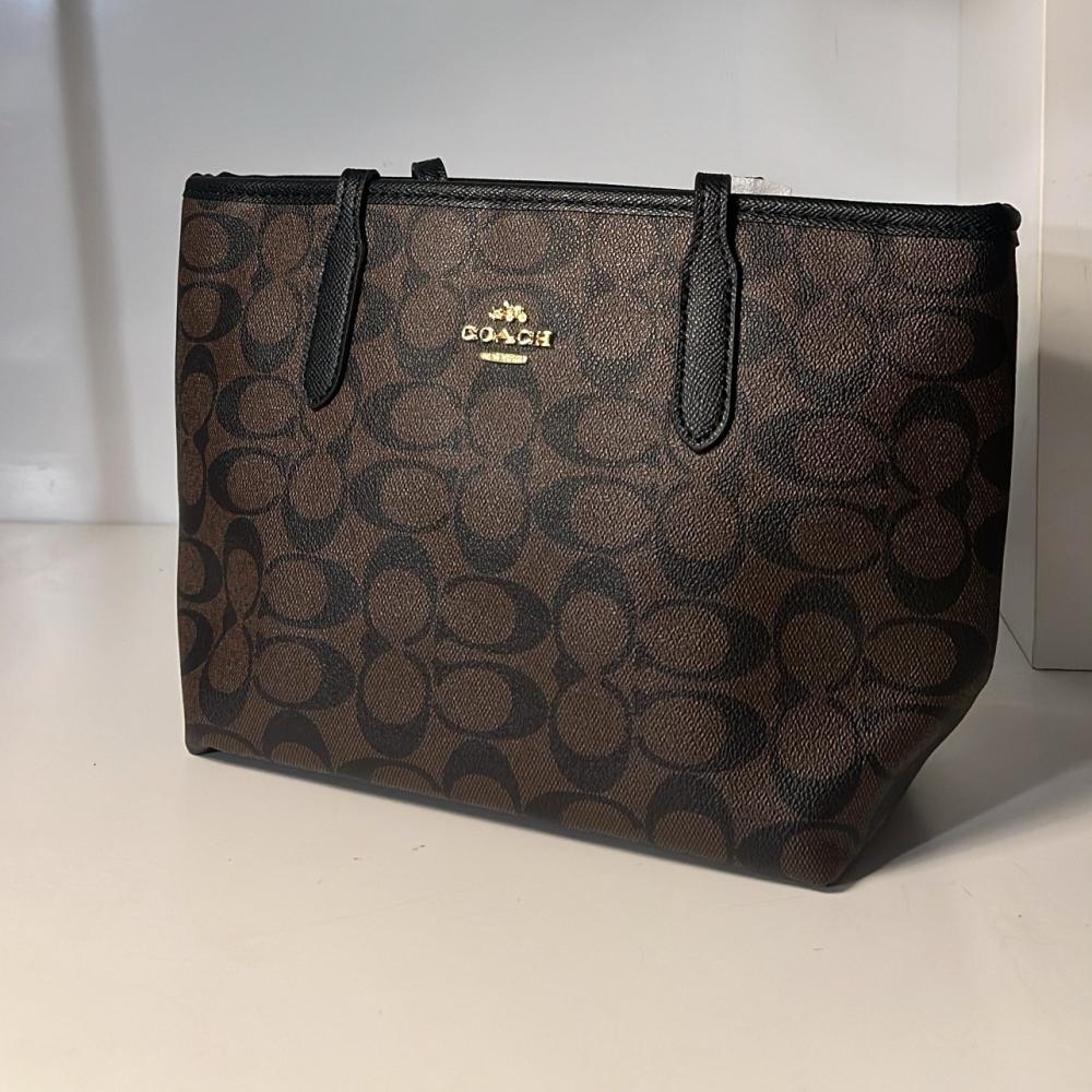 حقيبة كوتش الكبيرة المنقوشة بشعارها مصنوعة من جلد فاخر وتتميز بحجم واسع مع الحفاظ على تصميم عصري وأنيق.