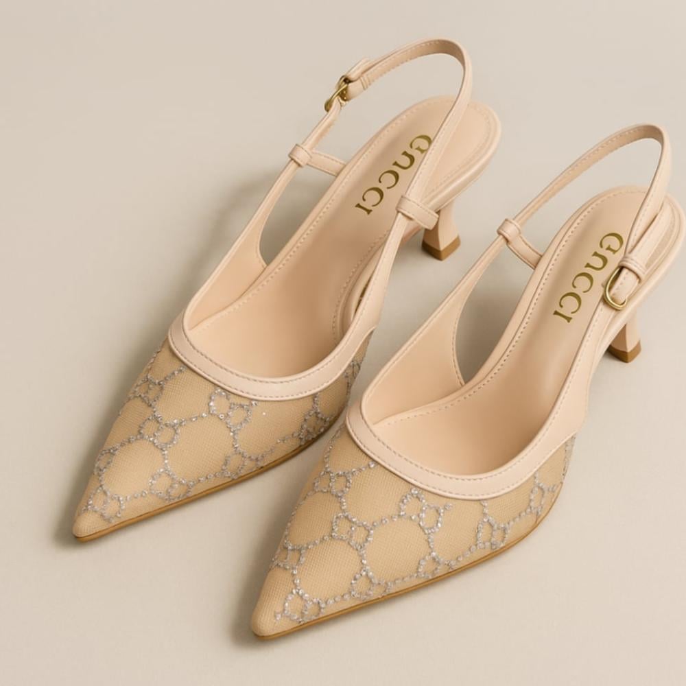كعب غوتشي فاخر منقش بنقشة GG الأيقونية بكعب متوسط يمنح أناقة عصرية ولمسة فاخرة لإطلالتك.