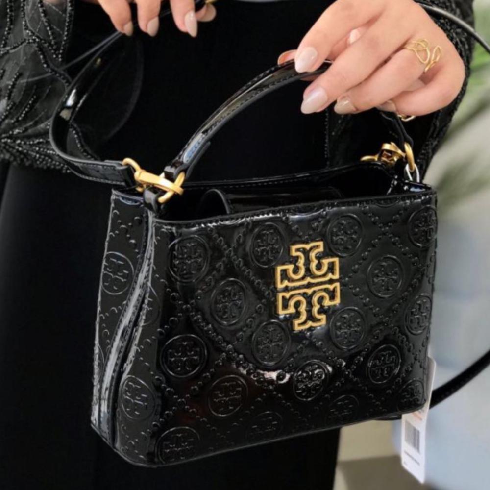 حقيبة يد توري بورش بتصميم أنيق ولامع، صنعت من جلد فاخر يضفي لمسة فاخرة وعصرية.